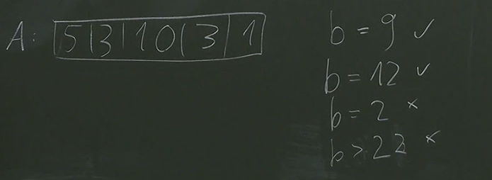 - Input: A set (represented as an array) of non-negative integers and a target sum , where for all .