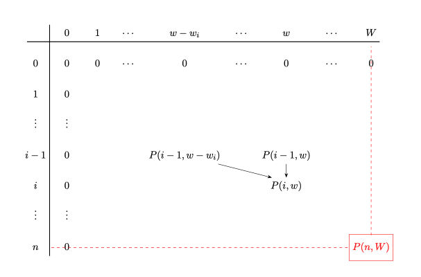 In simpler terms, represents the best profit we can get if we only consider the first items and have a knapsack with a capacity of .