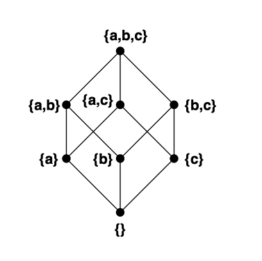 - Each set is positioned above the sets it covers, illustrating the subset relationships.