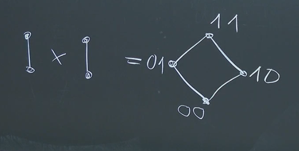 Visually, we can imagine taking the cross product of two lines, each with two elements. This results in a diamond shape in the Hasse diagram.