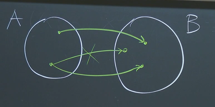 Injective (One-to-One): A function is called injective if for every , whenever , it follows that . In other words, different elements in the domain map to different elements in the codomain.