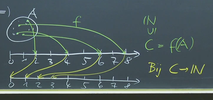 - (): If A is finite or , then A is countable by definition. In the finite case, the identity function on A suffices. In the infinite case, the bijection between A and provides the required mapping.
