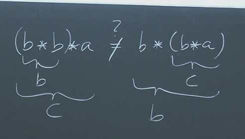A crucial property for binary operations is associativity. An operation is associative if for all . Let’s examine if our example operation is associative: