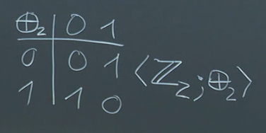 This group is isomorphic to , the integers modulo 2 under addition. It can also be interpreted as the bitwise XOR operation on a single bit. We denote this group as .