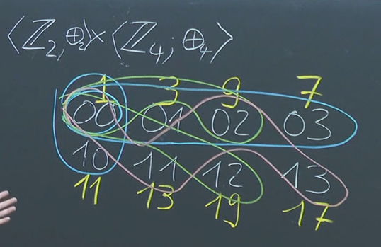 Under this mapping, multiplication modulo 8 corresponds to component-wise addition modulo 2. For example, corresponds to .
