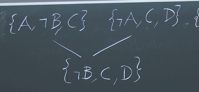 Consider the clauses and . We can resolve these clauses on the literal , obtaining the resolvent: