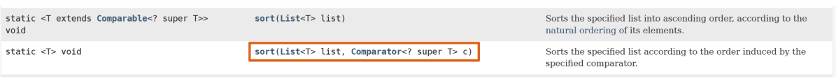 compareTo(E other): Defined in theComparableinterface. Implicitly called on the object you’re comparing (e.g.this). Takes one argument (the other object). Used to define the natural ordering of objects. -