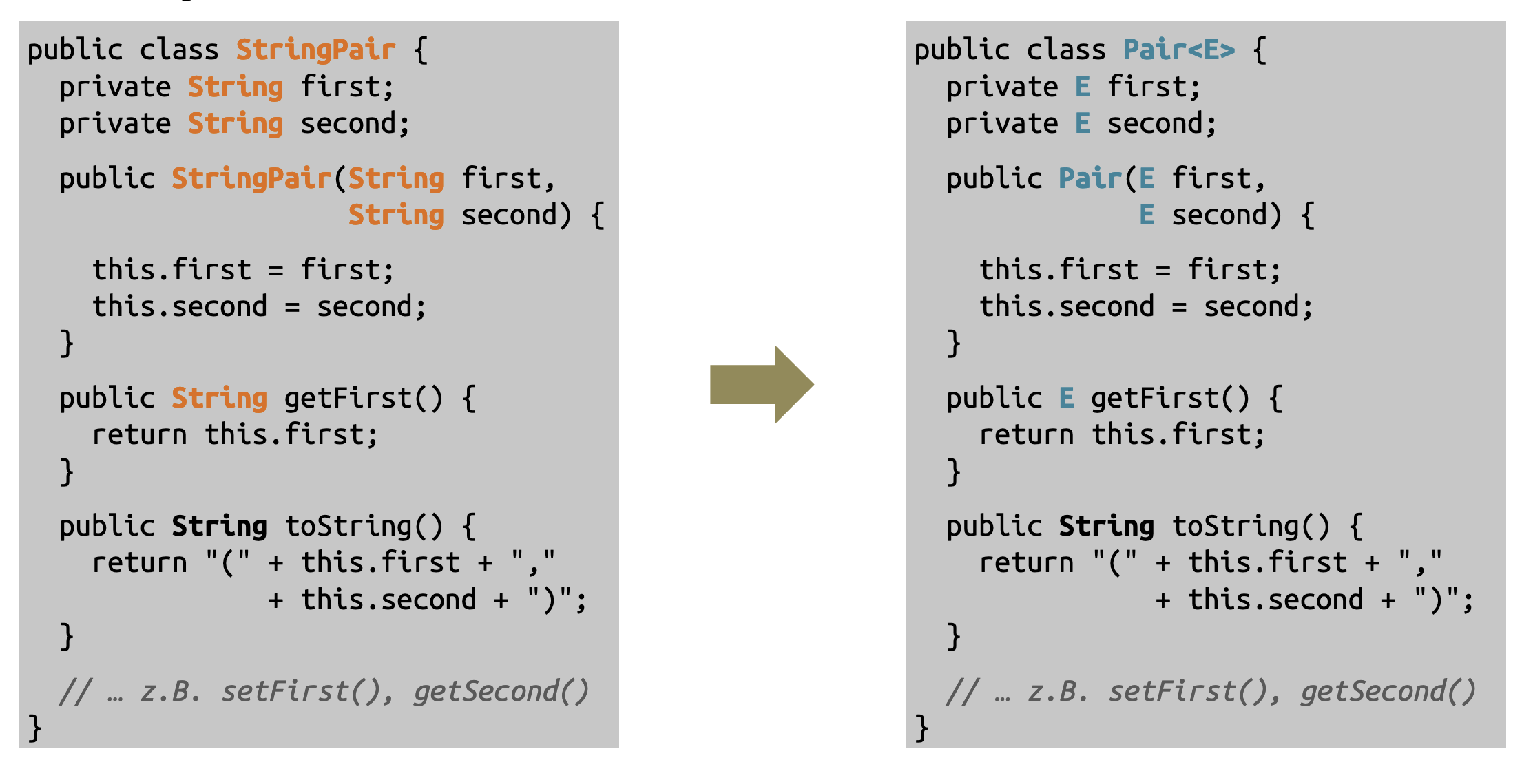 E,T,Elem). Type parameter names are single, uppercase letters by convention. - Update the code to use the type parameter where appropriate.