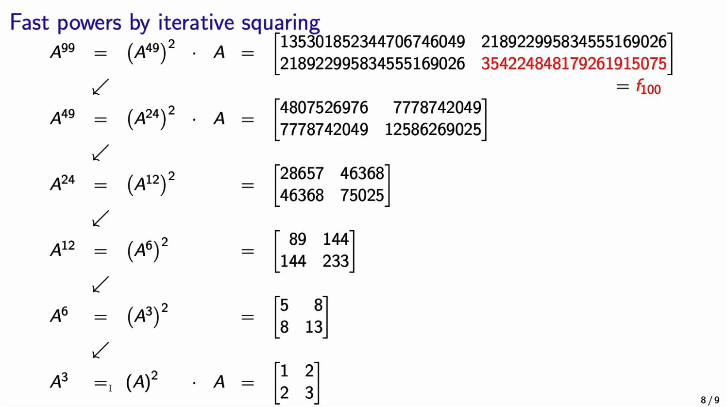 Fast Fibonacci Numbers by Iterative (Matrix) Squaring