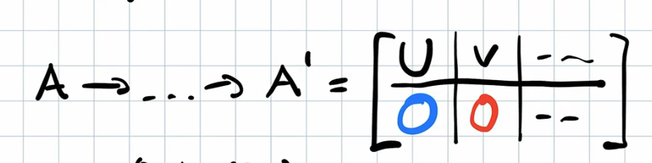 Now this equation will have a solution since U is a valid upper triangular matrix with non-pivots which means that can be easily solved by back substitution (see: Gauss Elimination). We’ll then get a non-zero vector implying linear dependence.