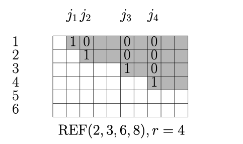 Let be an matrix. is in row echelon form (REF) if the following holds: There exist column indices such that: