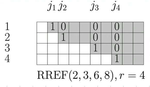 If , is in reduced row echelon form (RREF) (no completely white rows).