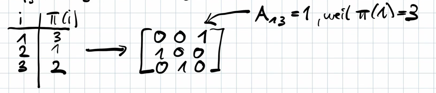 Construction: The permutation matrix A corresponding to a permutation and bijective transformation has entries if and otherwise.