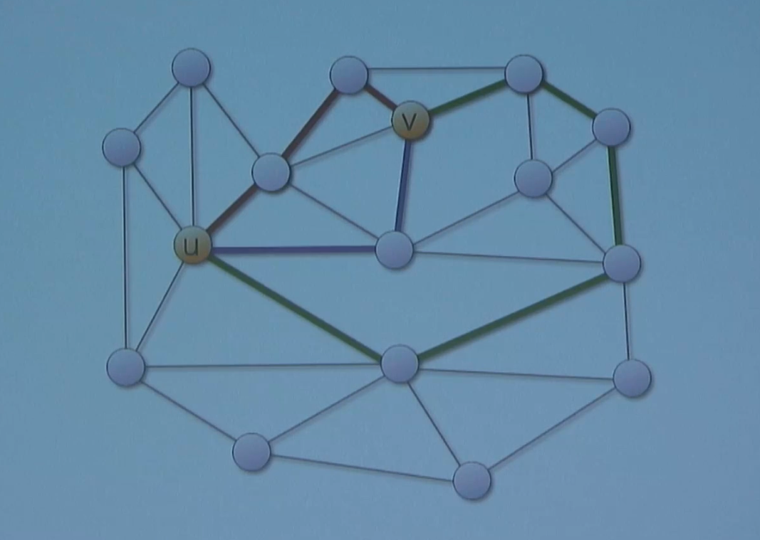 This shows that removing 3 edges doesn’t suffice to disconnect u and v. The above example also shows us the relationship between connectivity measures.