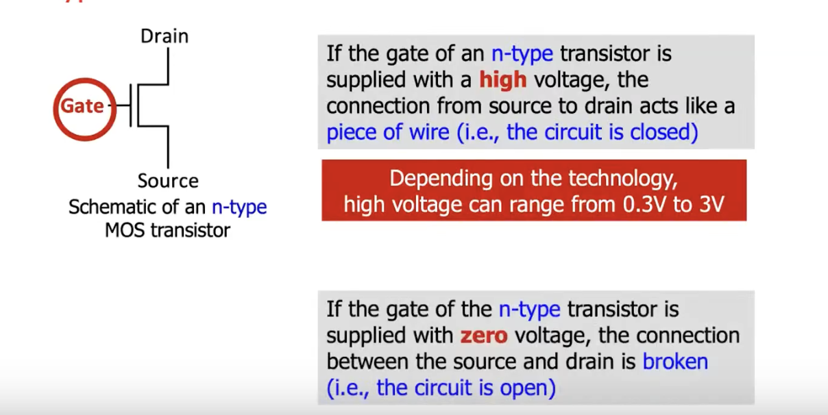 There are two main types of MOS transistors: n-type MOS (nMOS) and p-type MOS (pMOS).