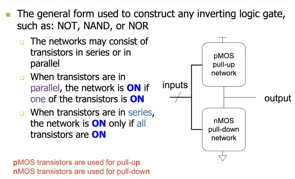 In the previous lecture, we explored fundamental CMOS logic gates, including NOT, NAND, and AND. Now, let’s generalize the structure of CMOS gates and understand the rationale behind it.