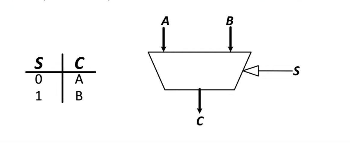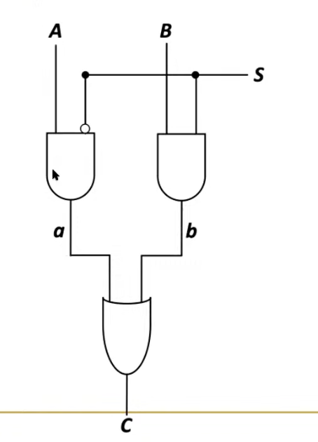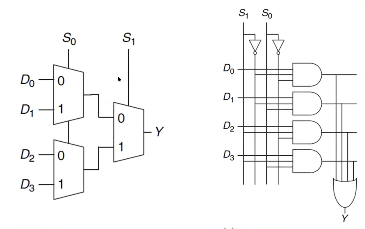 Larger multiplexers can be constructed using smaller ones. For example, a 4-to-1 MUX can be built using three 2-to-1 MUXes: