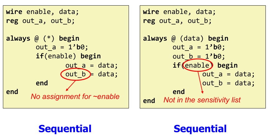 - Combinational HDL constructs are not sufficient to express sequential logic.