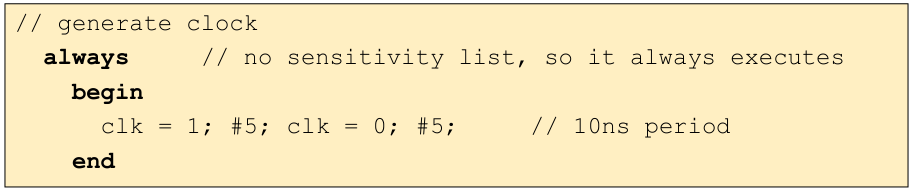 Verilog provides specific syntax constructs that are particularly useful in testbenches:
