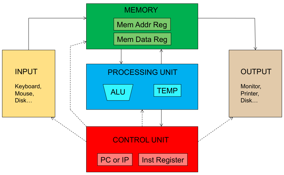 - Stored Program: Instructions are stored in memory alongside data, allowing for flexibility and programmability. This unification of memory for instructions and data is a key feature.