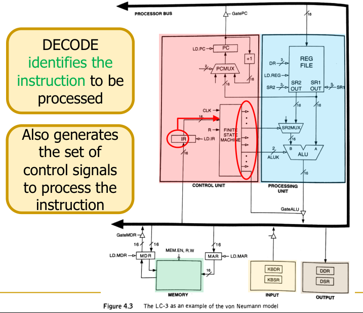 - DECODE: Determine the instruction’s operation and operands.