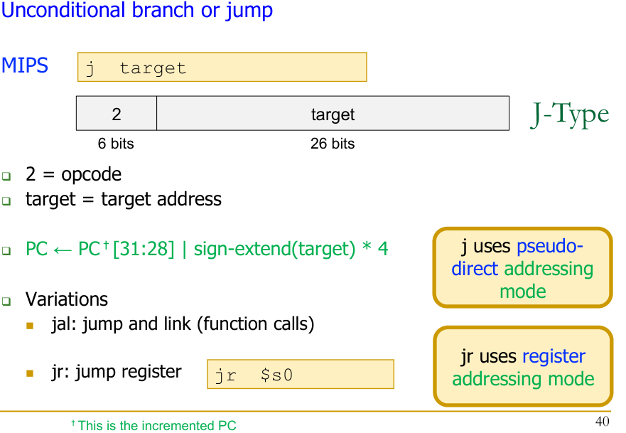 The j instruction in MIPS also provides an unconditional jump, but with a different addressing mode: