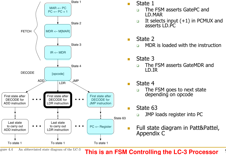 Control of the Instruction Cycle via Finite State Machine (FSM)