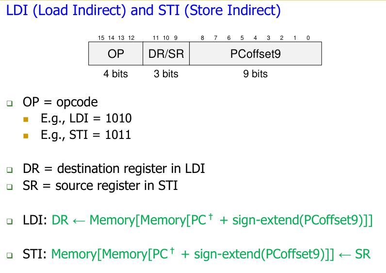 LDI(Load Indirect) andSTI(Store Indirect) employ Indirect Addressing. - Address Calculation: