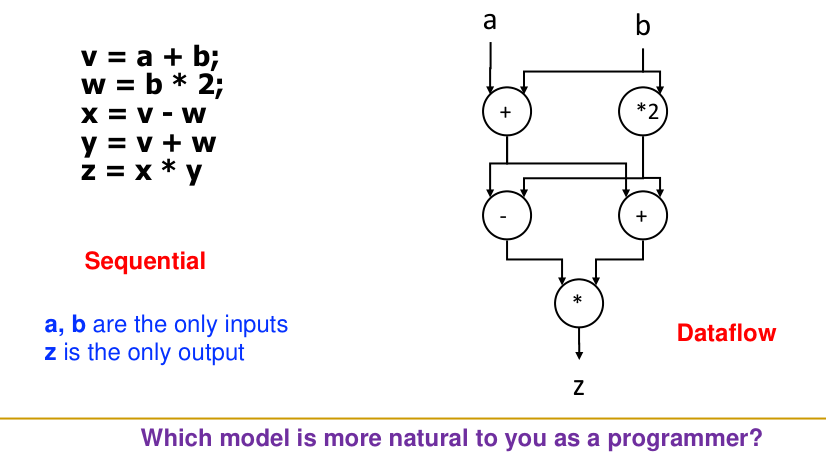 Let’s briefly introduce the Dataflow Execution Model as a fundamentally different approach to computation compared to the Von Neumann model.
