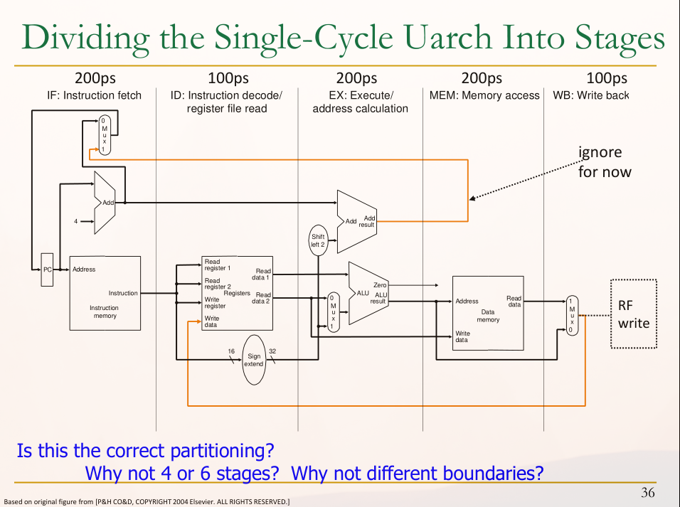 - Is this the correct partitioning? As seen in the single-cycle analysis, the delays for these conceptual stages are often not uniform (e.g., memory access might take longer than register read). Balancing these stage delays is crucial but difficult.