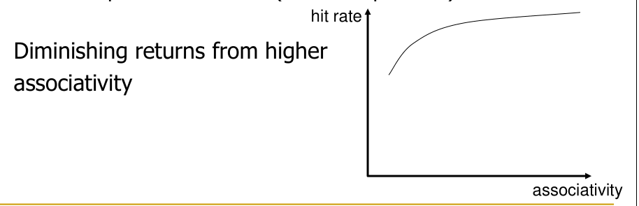 - There are diminishing returns; the improvement in hit rate lessens as associativity gets very high.
