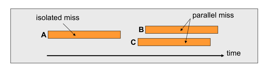- Parallel misses (like B and C) have their latencies overlapped. The effective stall time is determined by the longest of the parallel misses, not their sum.