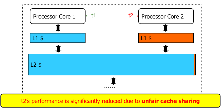 - Resource Sharing Challenges: Sharing resources (like caches or memory bandwidth) can improve overall utilization but also leads to contention, potentially degrading individual thread performance and making performance less predictable (loss of performance isolation).