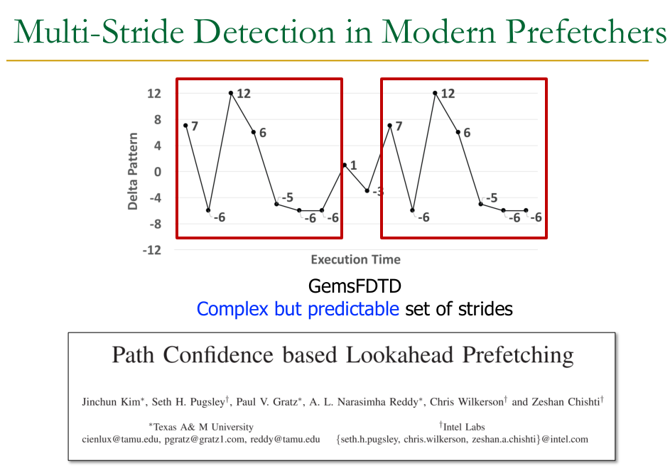 - Can use bootstrap prediction: the predicted next stride is used to extend the history, allowing further predictions until a confidence threshold is met. This allows prefetching far ahead.