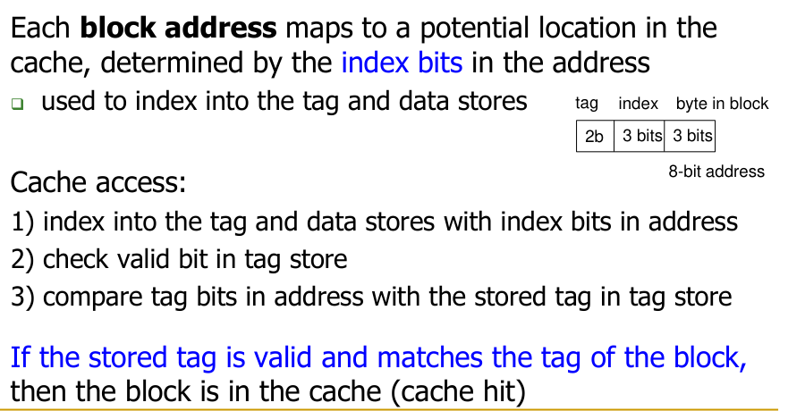 A key design question is how to map a large number of memory blocks to a small number of cache blocks. A memory address is typically divided into three fields for this purpose: the Tag, the Index, and the Byte Offset.