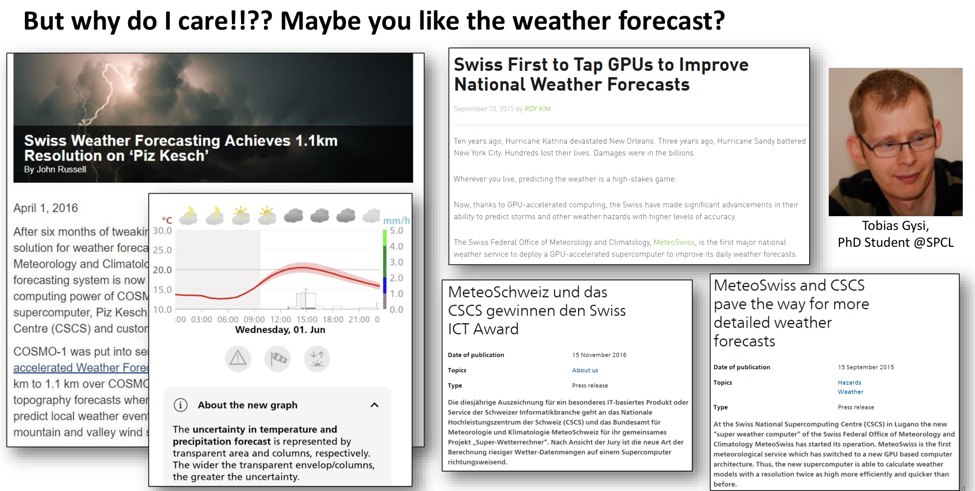 …like detailed weather forecasting crucial for daily life and disaster preparedness (where ETH and CSCS have made significant contributions using GPU acceleration)…