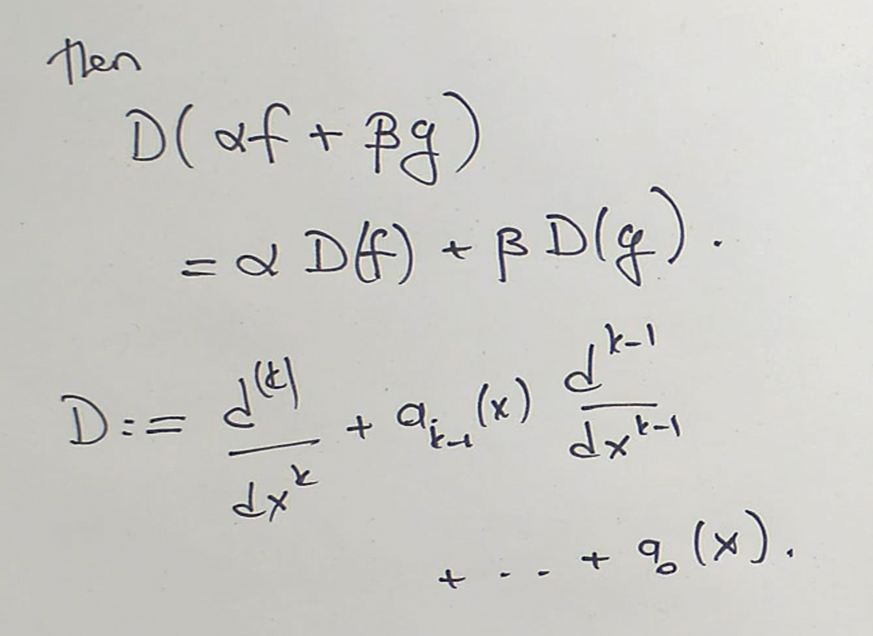 A linear ODE of order k is an equation that can be written in the form: