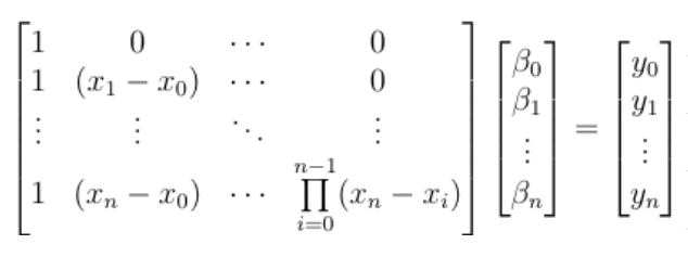 - Efficient and Stable Coefficient Calculation: If we write out the interpolation conditions using the Newton basis, the resulting system matrix is lower triangular.
