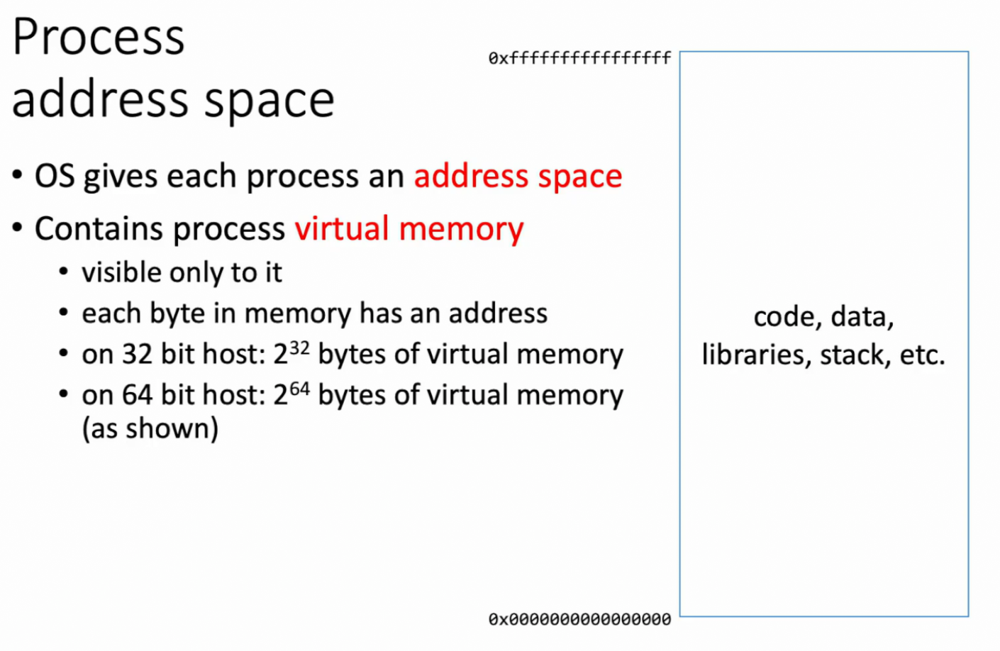 - It is private: One process cannot (normally) see or access the address space of another. This isolation is a fundamental security and stability feature of modern operating systems.