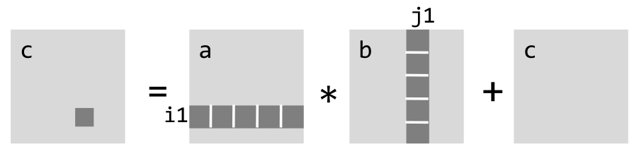for (i = 0; i < n; i+=B) for (j = 0; j < n; j+=B) for (k = 0; k < n; k+=B) /* Inner loops process a B x B tile */ for (i1 = i; i1 < i+B; i1++) for (j1 = j; j1 < j+B; j1++) for (k1 = k; k1 < k+B; k1++) C[i1][j1] += A[i1][k1] * B[k1][j1];