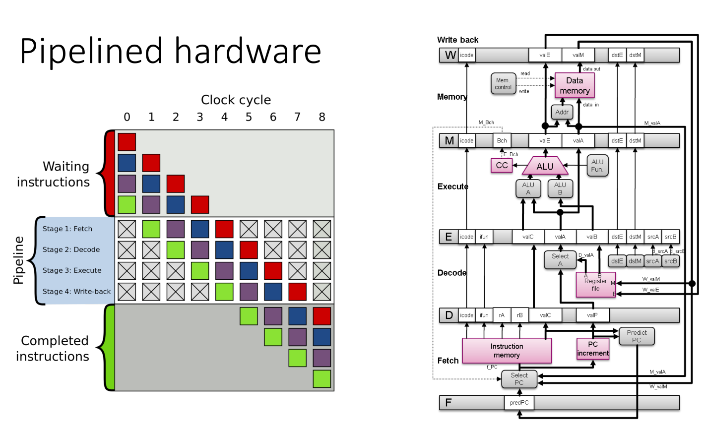 - Drawback: Horribly slow. Most hardware units sit idle most of the time. The clock speed is limited by the time it takes for a signal to propagate through all stages.