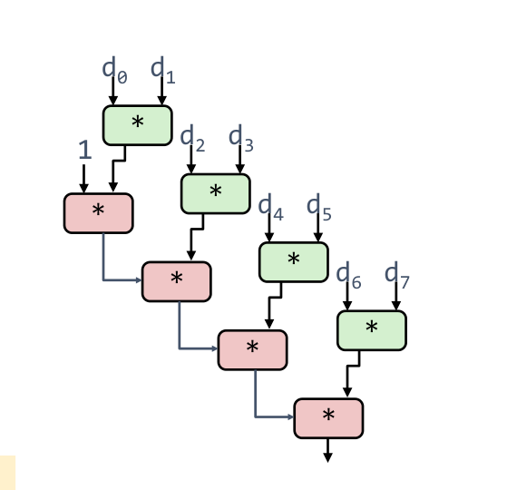 xis ready to be multiplied, the result ofd[i]*d[i+1]is also ready.
