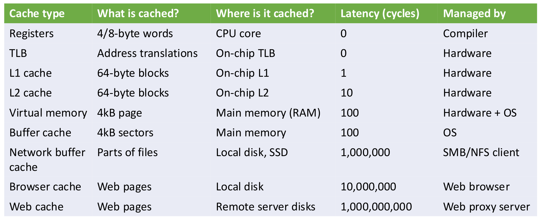- Software: 4KB pages (Virtual Memory), entire files, or complete web pages (Browser cache).