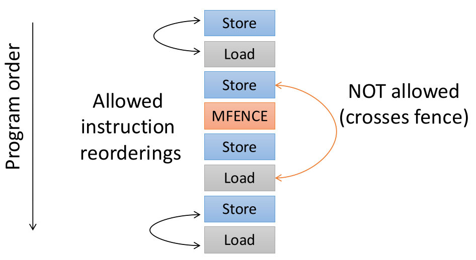 Since the hardware reorders things, how is correct code written (e.g., implementing a lock)? The hardware must be explicitly told “Stop reordering!” using Fences.