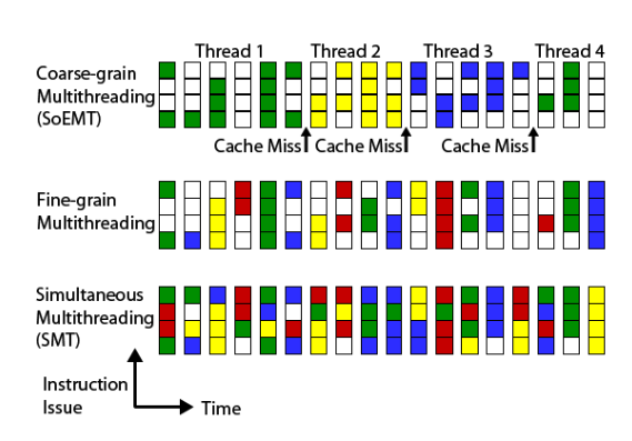 - Coarse-Grained MT: A thread is switched only on a long-latency event (like an L3 miss).