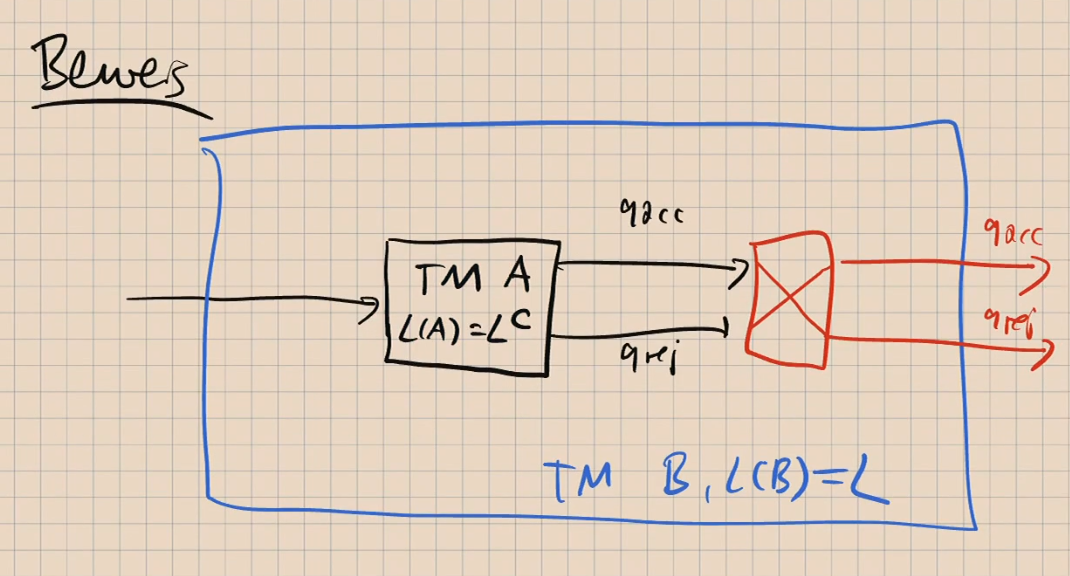 If we have this function , and a hypothetical machine that decides , we can build a machine for :