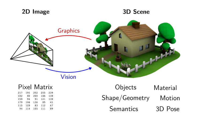 Computer Vision starts where graphics leaves off. We are handed the final product, a 2D image, which to a computer is nothing more than a vast grid of numerical values. From this limited, flat representation, we must perform an act of profound inference. We must solve the inverse problem: to deduce the rich, 3D world that gave rise to the image. This is a process of analysis.