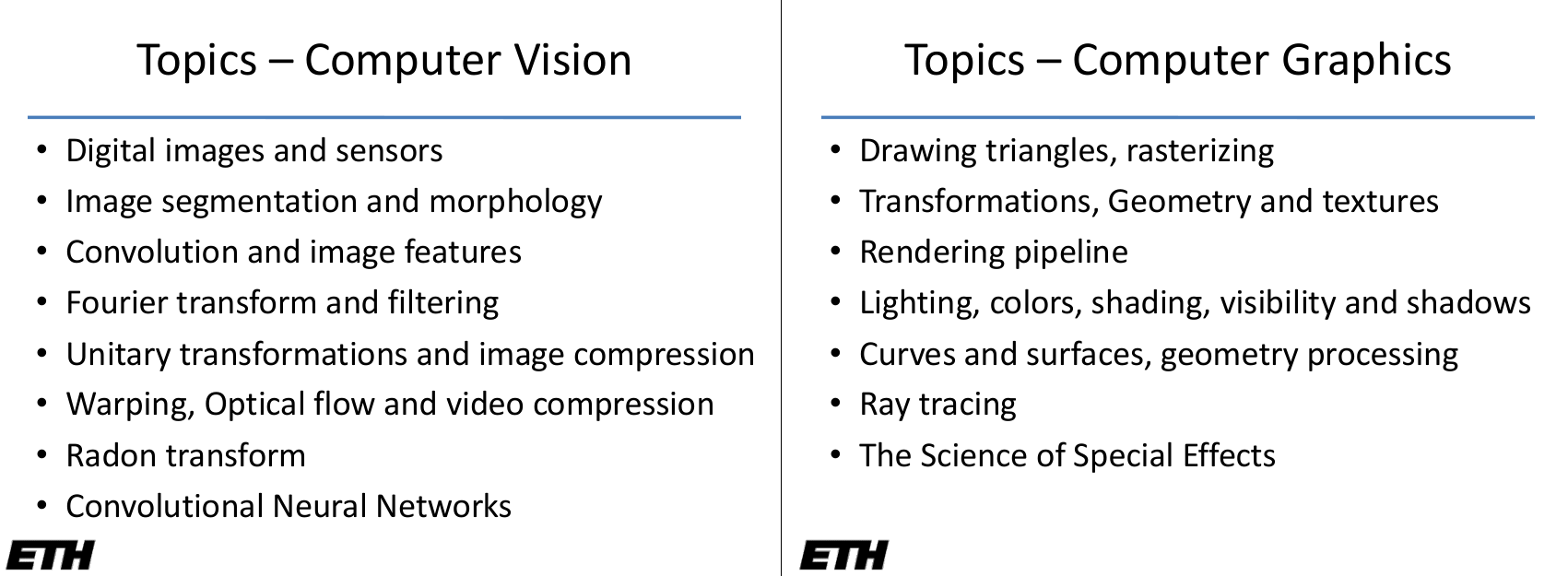 The second half, guided by Prof. Markus Gross, will venture into the realm of Computer Graphics. This is the art and science of creating. Here, we will learn how to synthesize visual worlds from the ground up, how to model the geometry of a mountain, simulate the way light dances on water, and render the breathtaking scenes you see in modern films and video games.