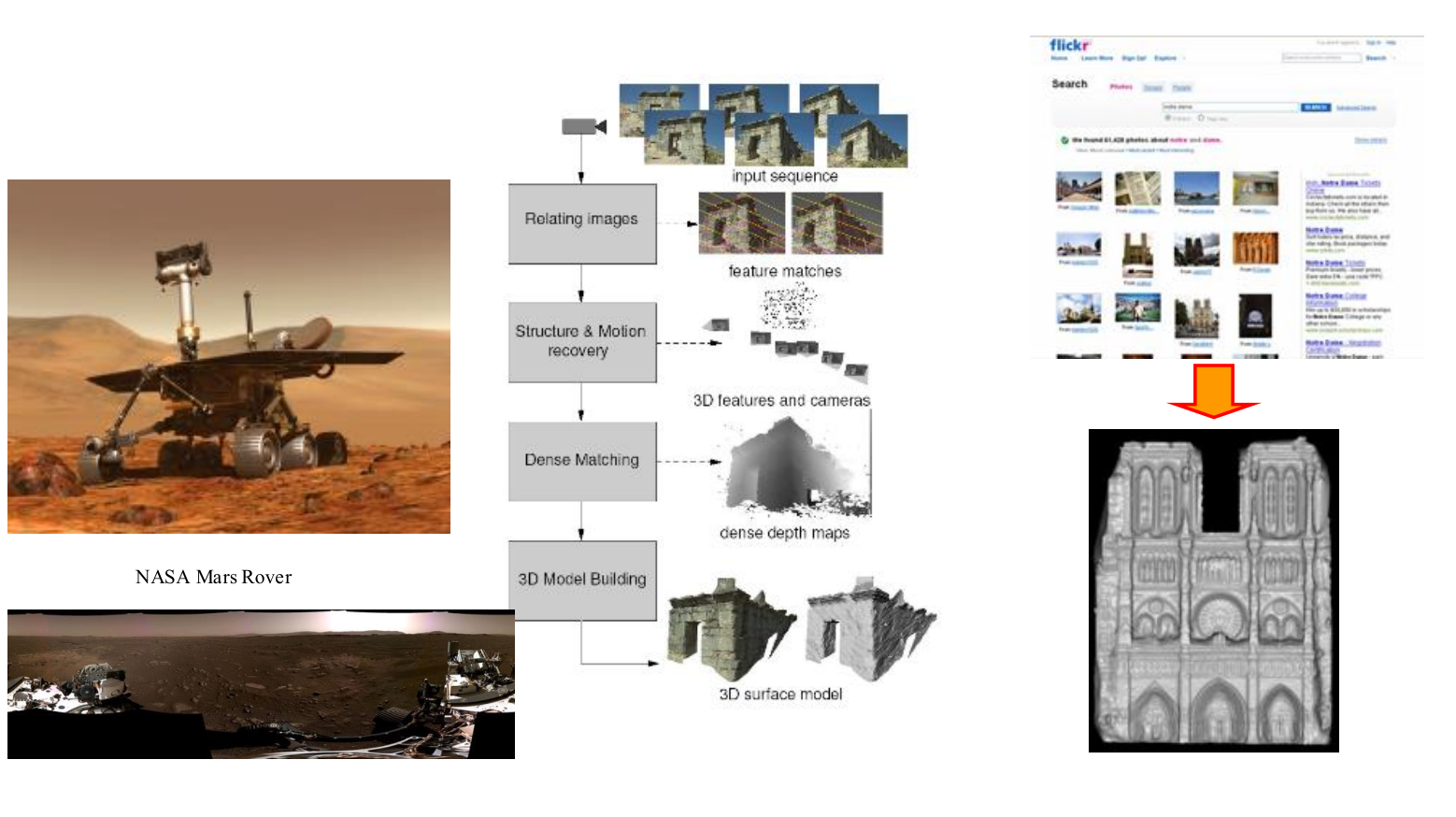 The first pursuit is to use vision as a scientific instrument. Here, the goal is to extract precise, quantitative information about the 3D world from images. A classic example is the NASA Mars Rover, which uses its stereo cameras not just to navigate, but to build detailed 3D topographical maps of the Martian landscape. A more terrestrial example involves taking hundreds of tourist photos of a landmark, like the Notre Dame Cathedral, and using sophisticated algorithms to automatically stitch them together into a metrically accurate 3D model. This is about turning pixels into geometry.