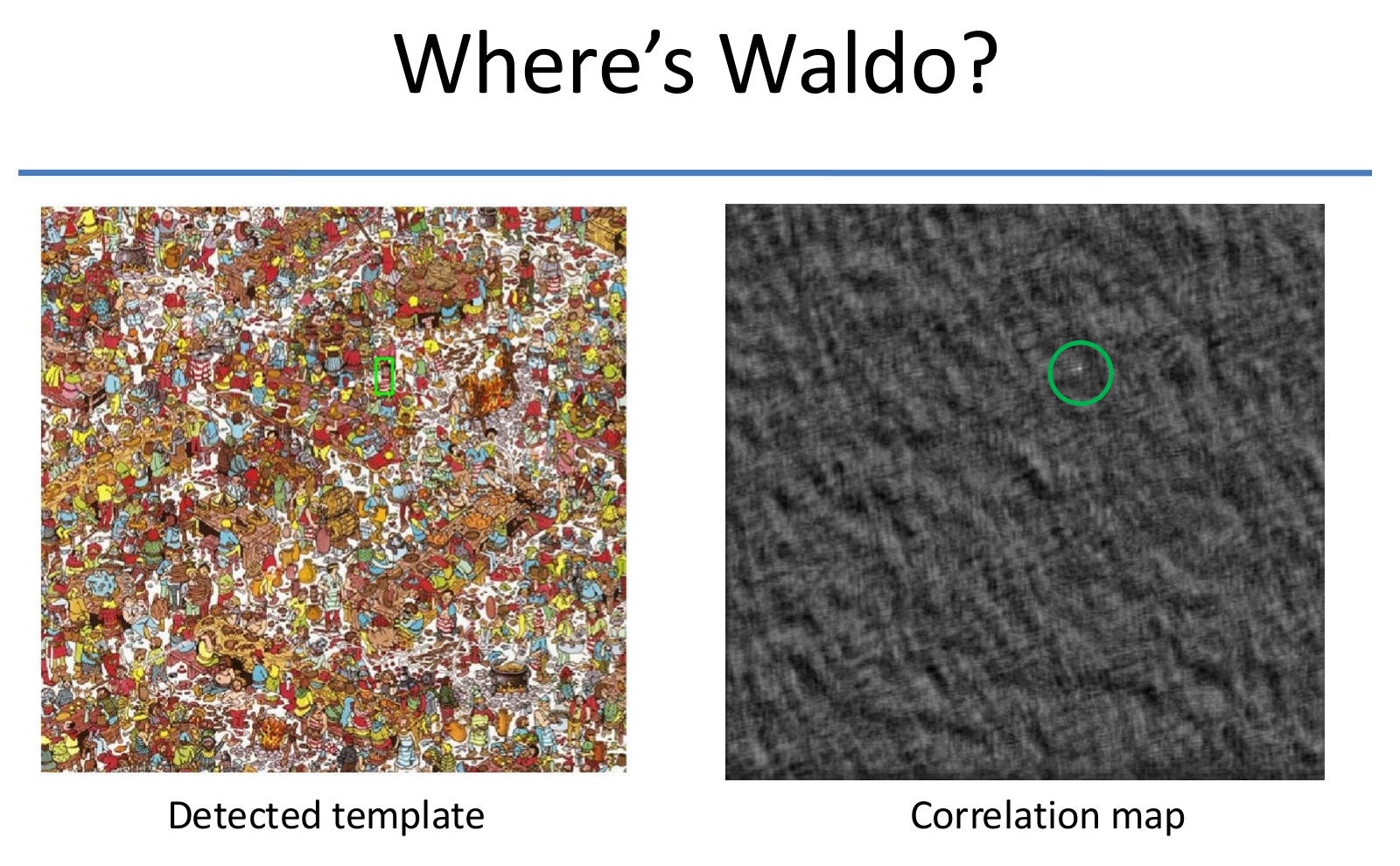 This is often used for template matching. If we treat the kernel as a “template” we are looking for, the output image will have high values in regions that are a good match for the template.